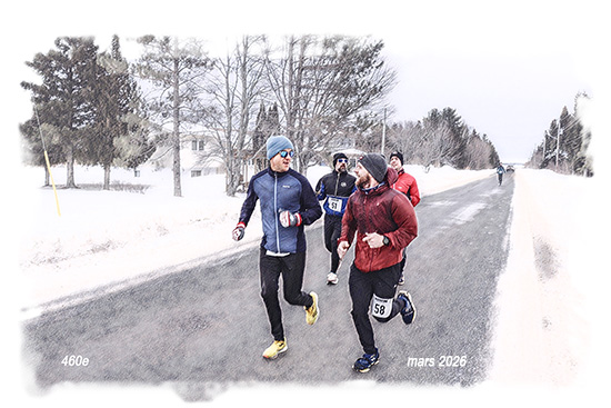 Louis-Philippe McGraw de Tracadie, N.-B, a remporté le 460e DMA en ce 1 février 2026 en un temps de 1:45:21. Il fut suivi de Ghislain Comeau de St-Isidore en 1:45:38 et d’Alain Vautier de Tracadie en 1:47:05. La seule femme sur le parcours, Silvia Antuna de Tracadie, a terminé en 2:28:03. Huit coureurs ont pris le départ sous un ciel nuageux et une température clémente de -5C. Deux coureurs ont complété la version virtuelle.